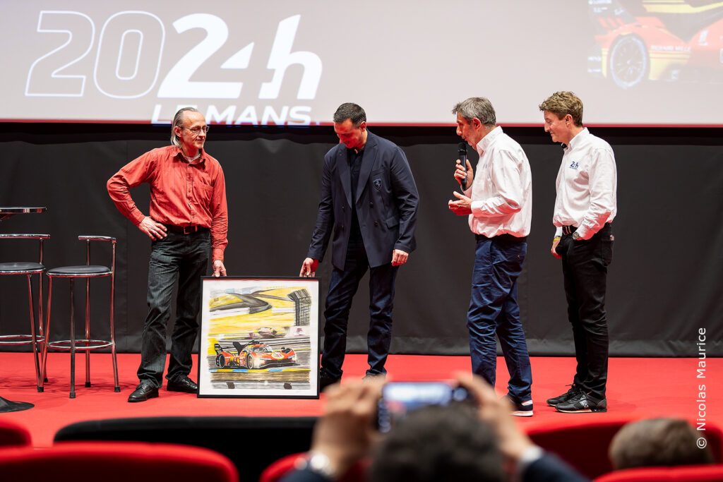 Ce samedi 5 avril, j’ai eu l’honneur de remettre une aquarelle à Baptiste Allain , ingénieur de course de la Ferrari 51, troisième aux 24 h du Mans 2024. Merci à Boutard Eric Président Délégation Territoriale de Vendée de l’ automobile club de l’ouest de m’avoir permis de me mettre en avant en présentant mon travail et au cinéma le Grand Lux Les herbiers.